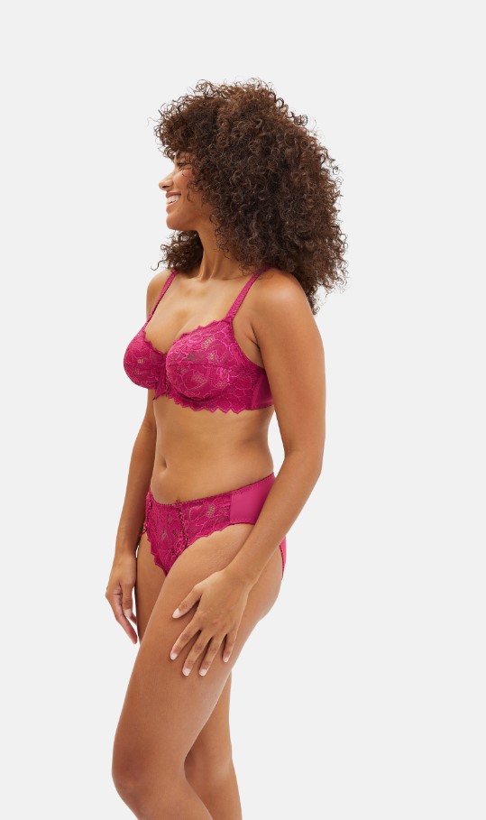 Bügel-BH mit hohem Tragekomfort, hochwertige wunderschöne elastische Spitze, Mittelsteg mit einer raffinierten Schnürung, Untercup wurde in der Innenseite mit einem stabilen Mesh unterlegt, Verschluss Haken und Ösen, Muschelkantenabschluss, verstellbare Träger